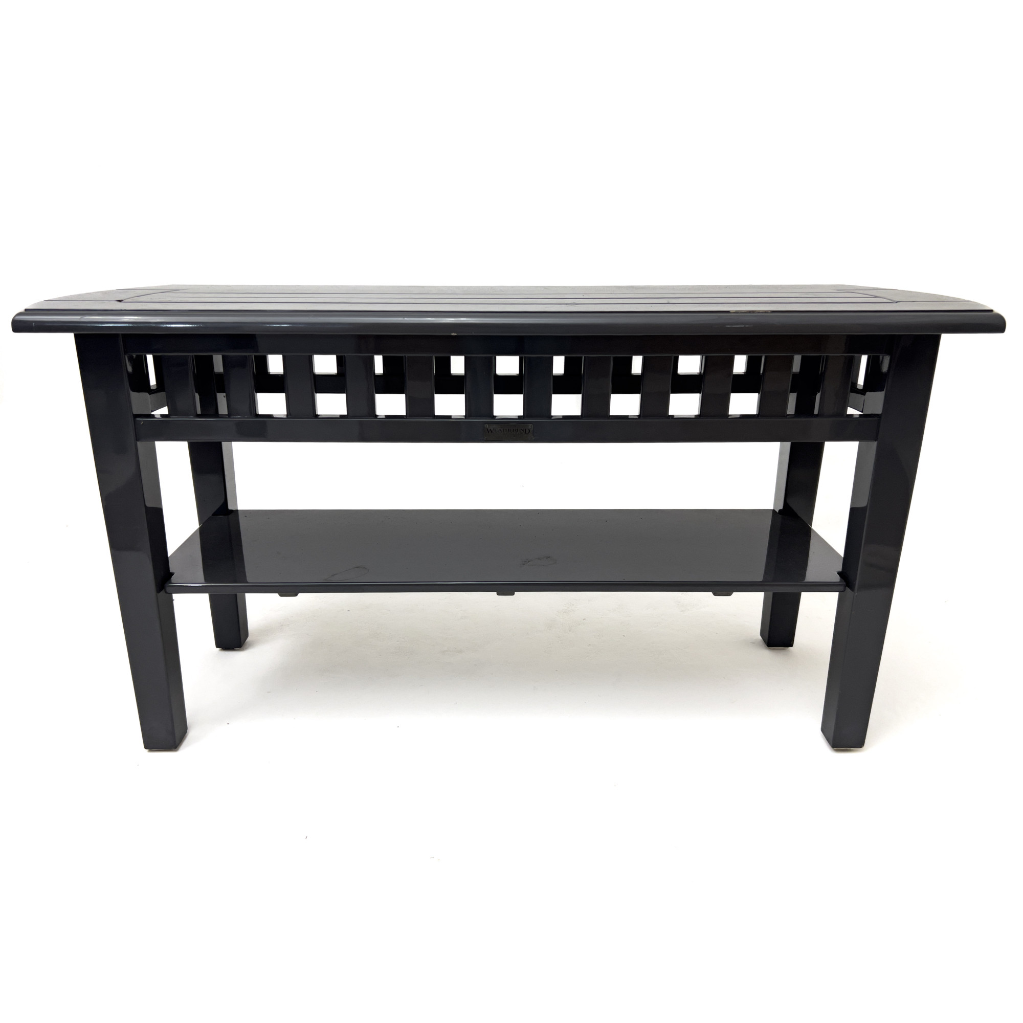 Yacht Finish on wood, glass 31 x 59 x 23 inches with manufacturer's label
