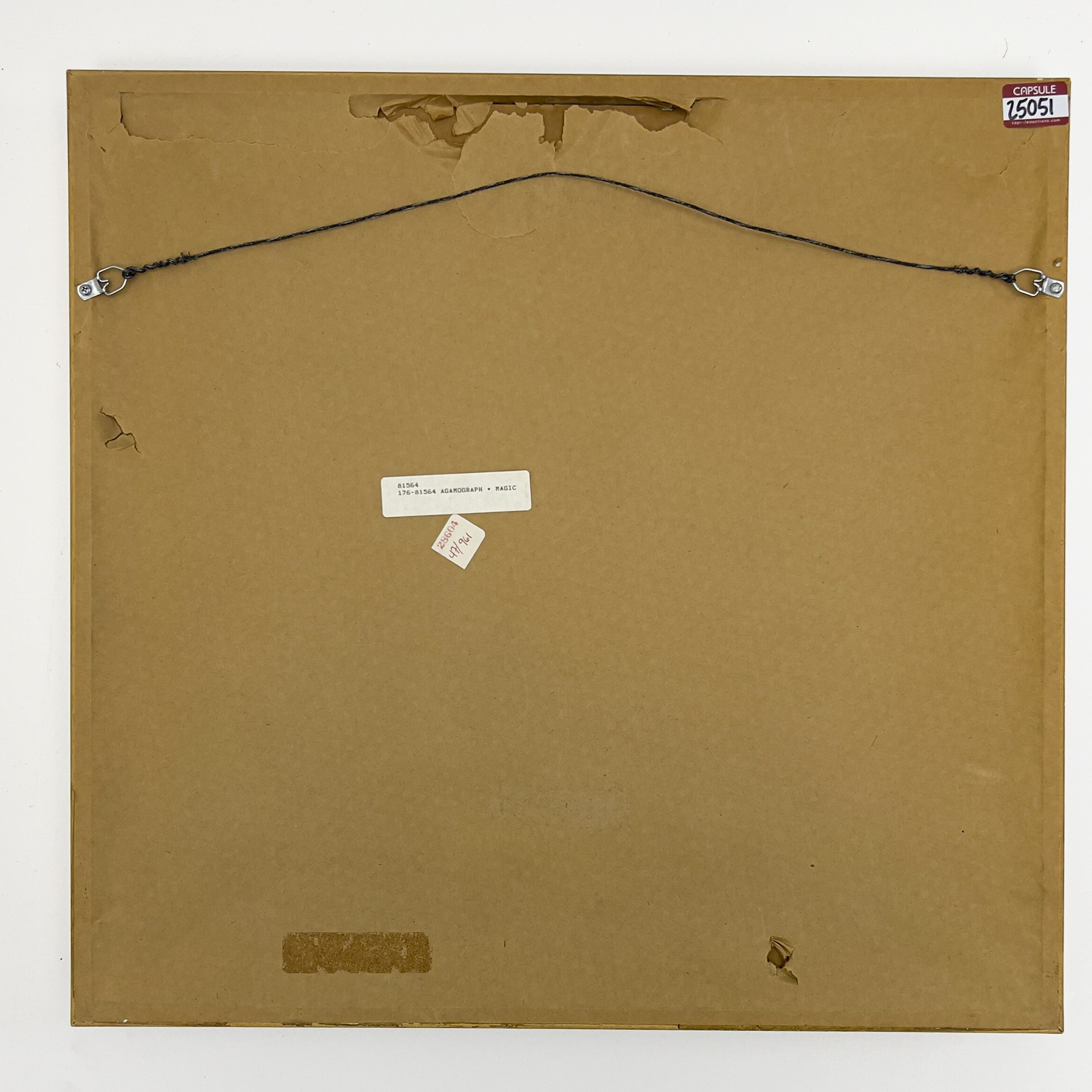 wood lacquered frame with acrylic glazing, frame dimensions: 22 x 23 x 2 inches